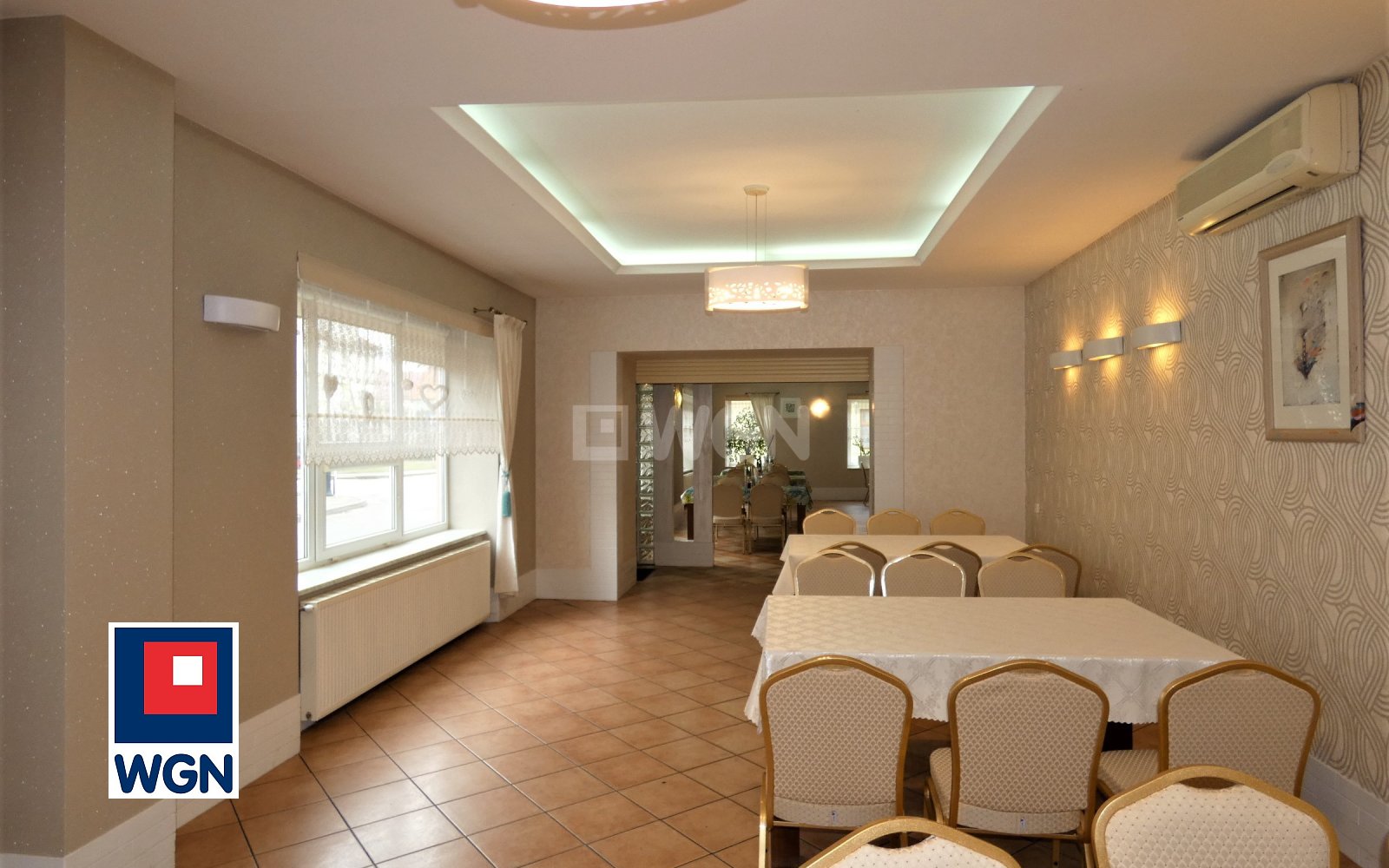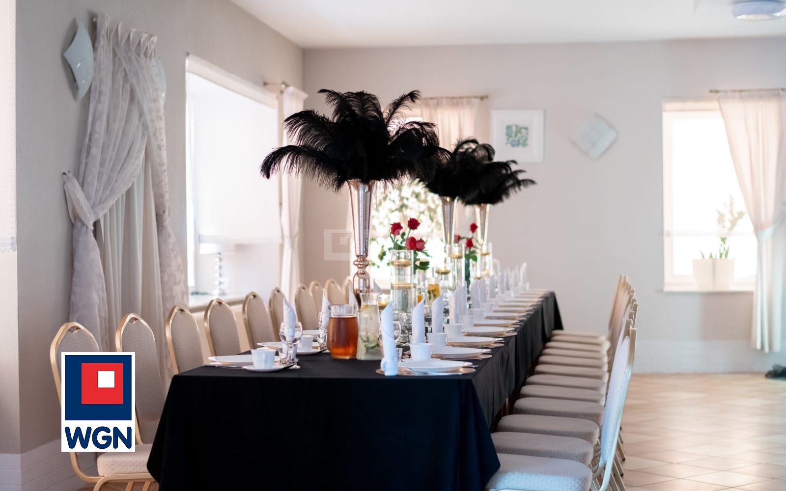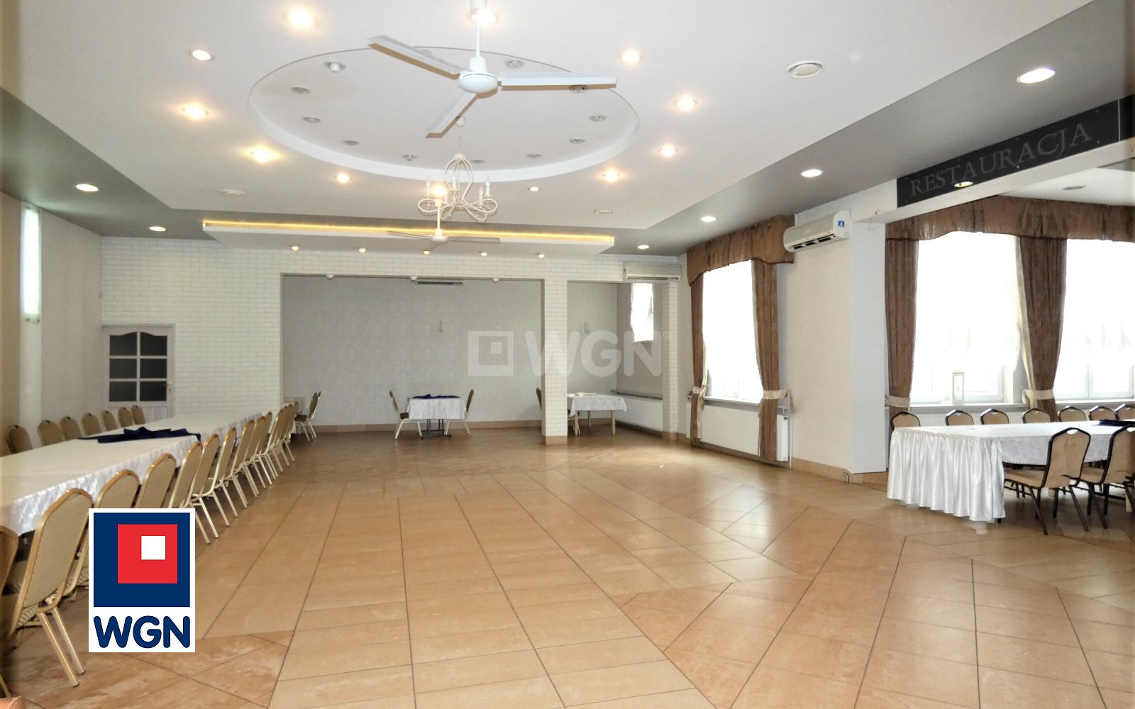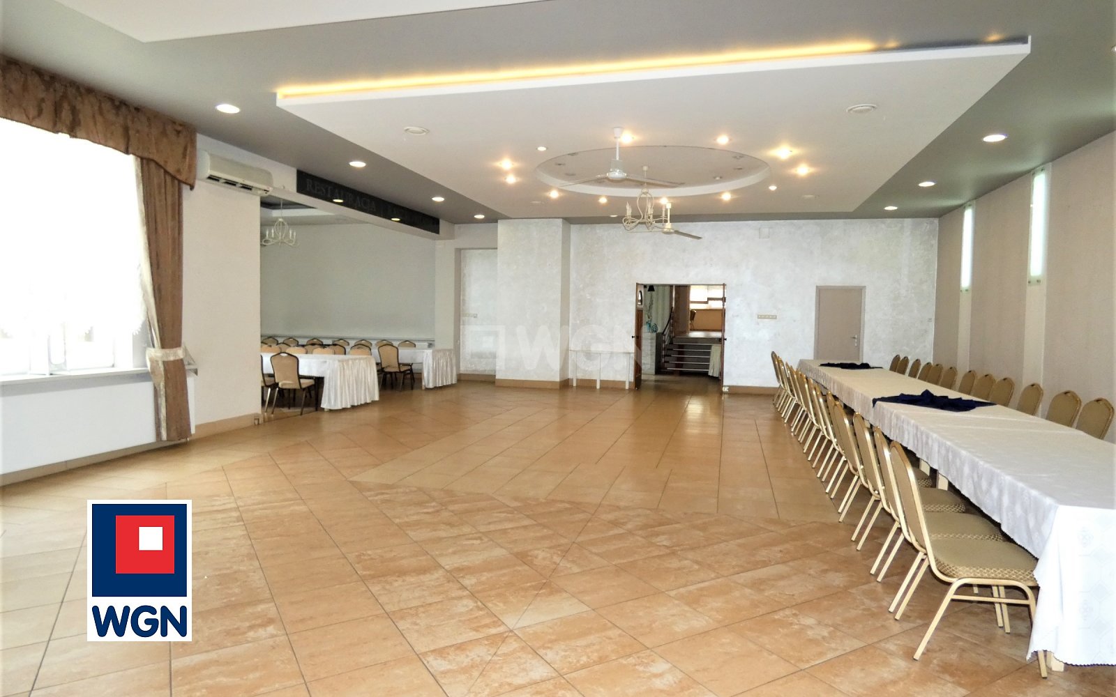 Łączna powierzchnia sal restauracyjno-bankietowych wynosi ok. 420 m2, co umożliwia komfortową organizację kilku wydarzeń jednocześnie. Każda sala posiada niezależne wejście oraz własne zaplecze sanitarne, co znacząco podnosi standard obiektu.